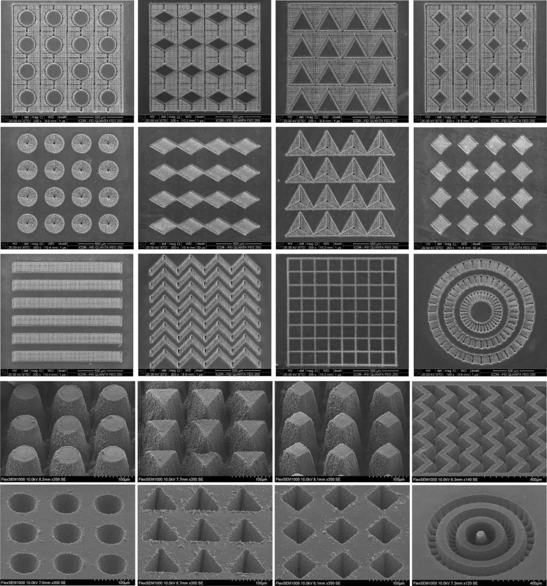 图2 飞秒激光设计制备的各种二维和三维图案化微结构