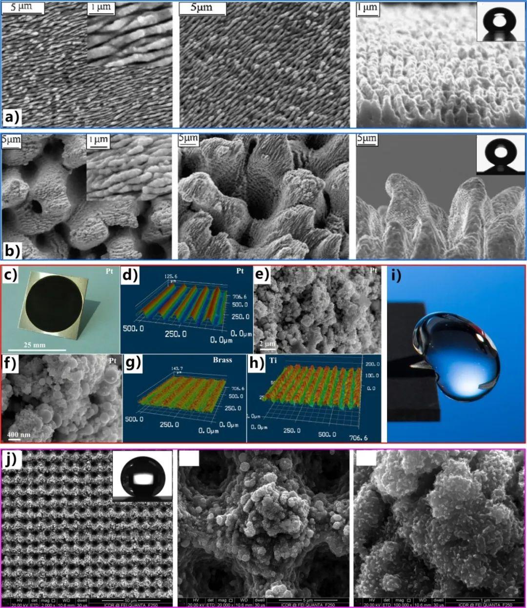 图3 飞秒激光加工赋予各种金属超疏水性及防水功能