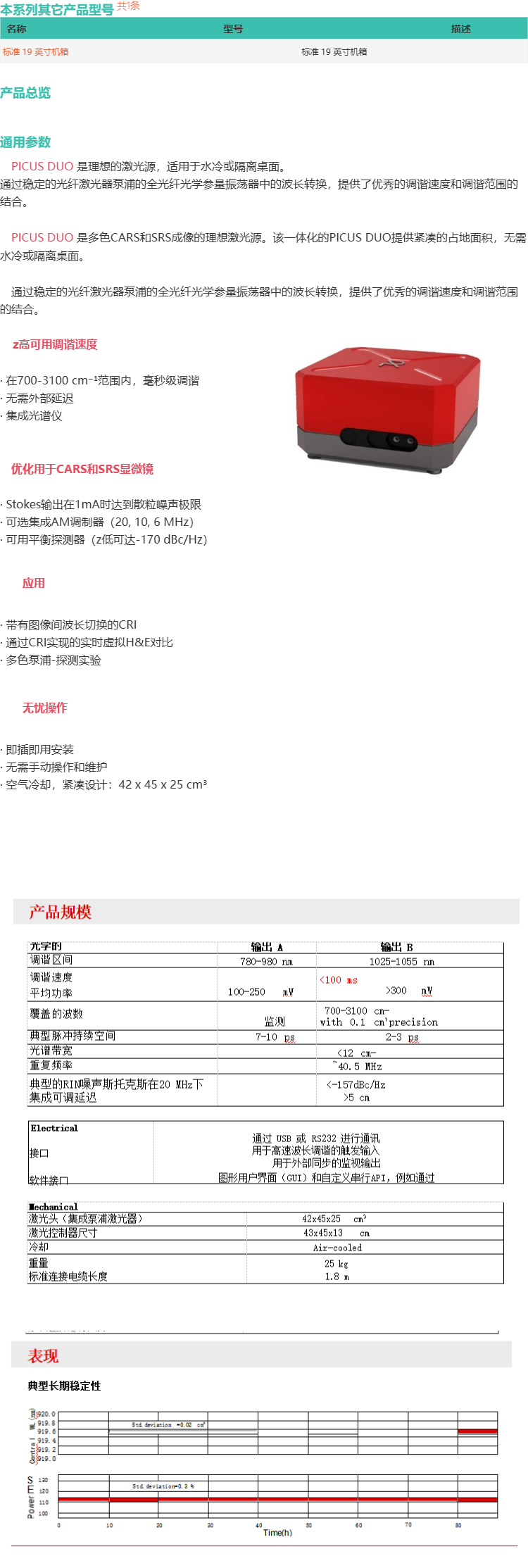 PICUS DUO 是多色CARS和SRS成像的理想激光源。该一体化的PICUS DUO提供紧凑的占地面积,无需水冷或隔离桌面。